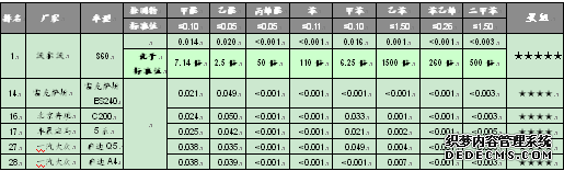沃尔沃S60 5星评级,豪华品牌中仅沃尔沃S60上榜 本次比较试验依照《乘用车内空气质量评价指南》、《车内挥发性有机物和醛酮类物质采样测定方法》(HJ/T400-2007)的规定,对43款车型中的苯、甲苯、二甲苯、乙苯、苯乙烯、甲醛、乙醛、丙烯醛等8种常见车内挥发性有机物的浓度指标进行了测试。结果显示,沃尔沃S60以各项检测成绩优于国家标准值2.5倍至1500倍的综合成绩名列首位。在《指南》规定的8项挥发性有机物中,苯和甲醛属于高毒物质,是考量车内空气质量状况好坏的首要标准。实测中的沃尔沃S60甲醛浓度值仅有0.014 mg/m³,为所有被检车型中浓度最低。另外值得关注的是,车内空气质量状况与价位等级并不成正比,公众普遍认为车内空气质量保障较高的豪华品牌相关送检车型中,仅沃尔沃S60获得5星评级。